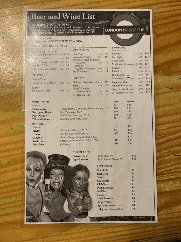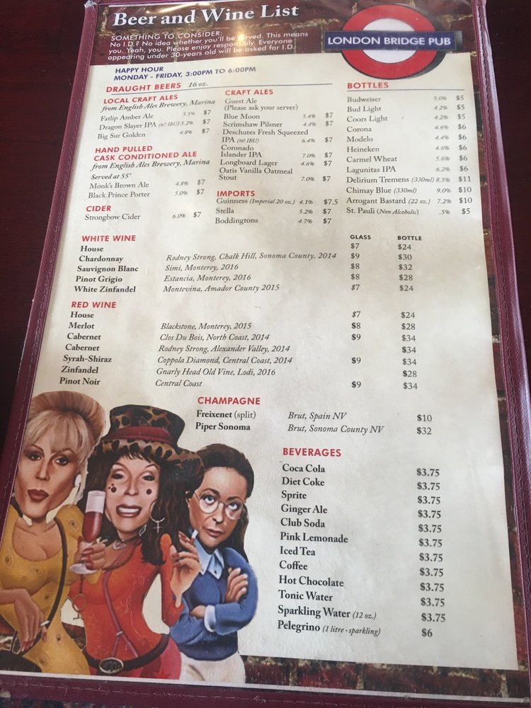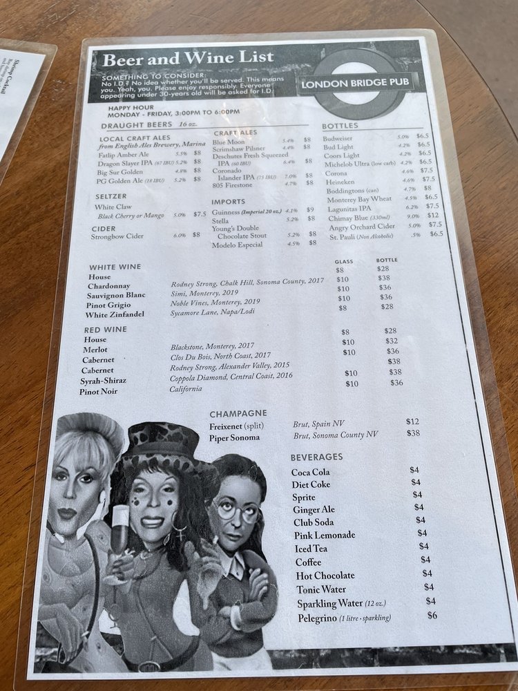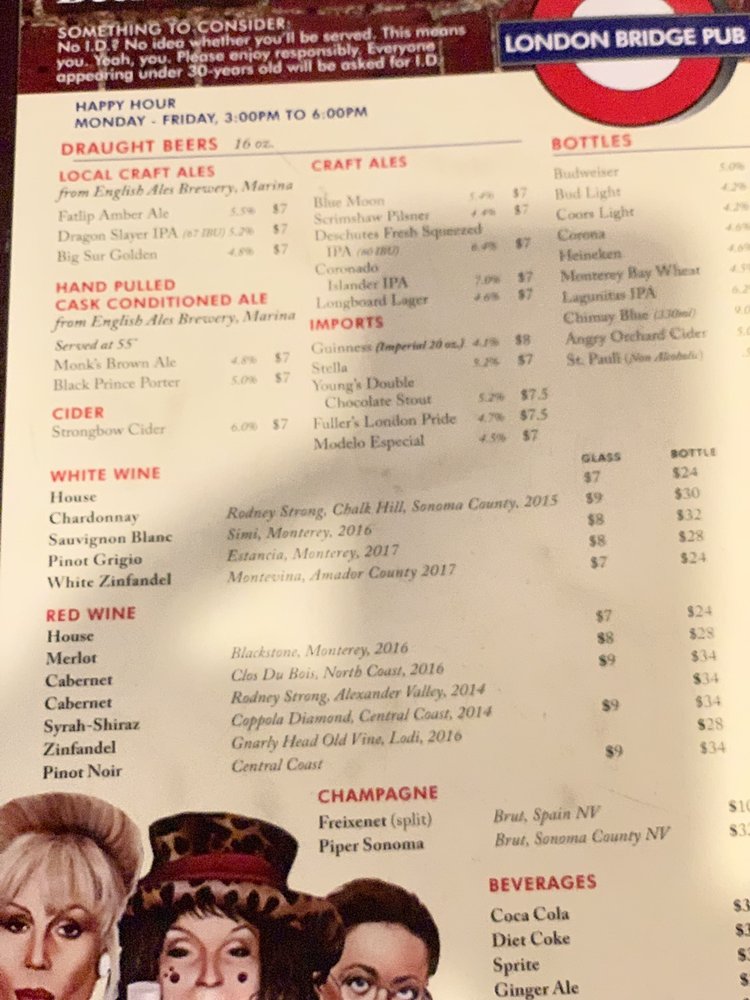 London Bridge Pub, located in Monterey, CA, offers a taste of England with dishes like pasties, fish and chips, and steak and mushroom pie that transport you to a traditional English pub experience. The menu is perfect for Brit expats looking for authentic flavors, as mentioned by satisfied customers. With a cozy waterfront vibe and a full bar, it's a great spot for a casual meal or happy hour. The staff is friendly and accommodating, making you feel right at home. Don't miss out on their black and blue salad, fish and chips, and curly straw onion rings. Overall, London Bridge Pub is a must-visit for classic British fare in a charming setting.